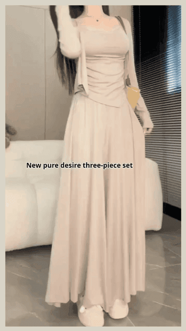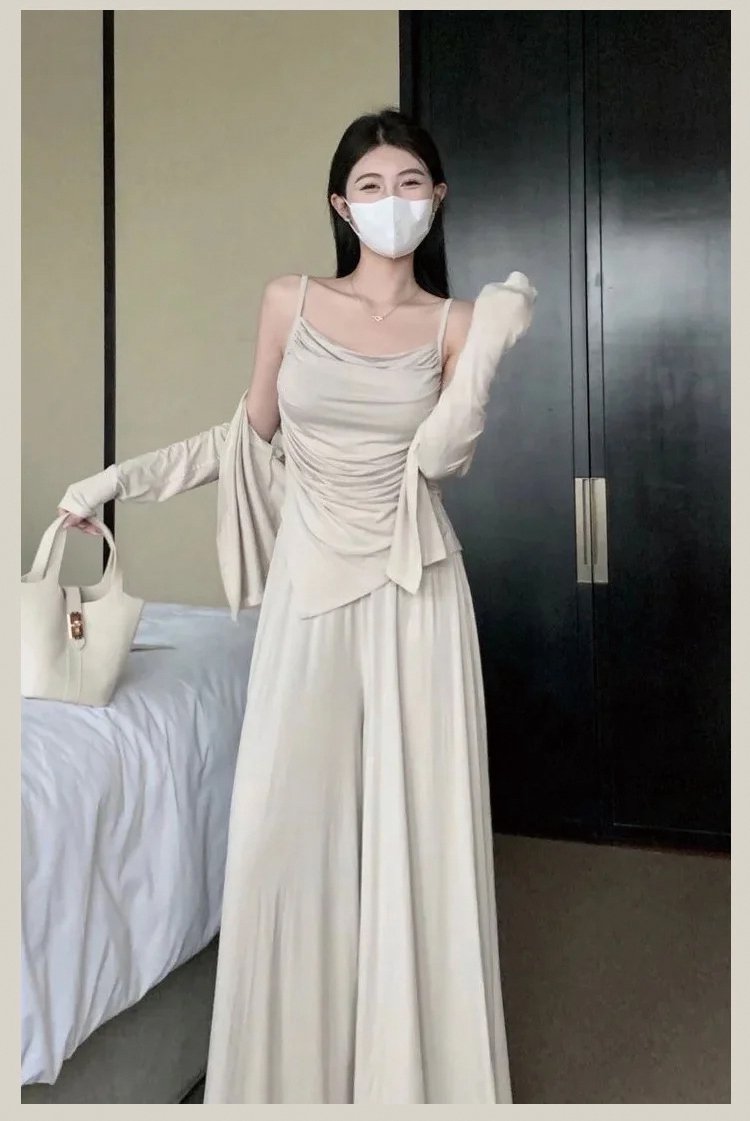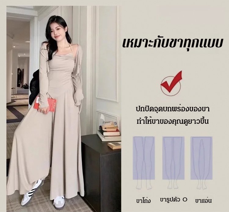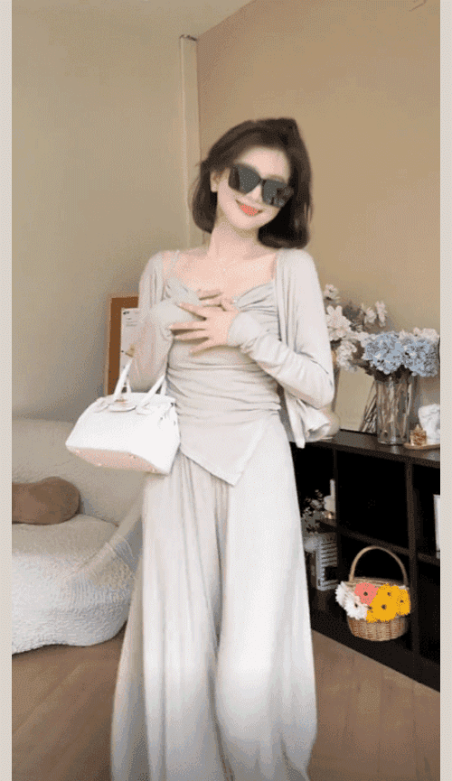 ชุดเซ็ทคาร์ดิแกนเสื้อสายเดี่ยว ชายเสื้อไม่สม่ำเสมอ ชุด 3 ชิ้น ดูผอม สำหรับผู้หญิง